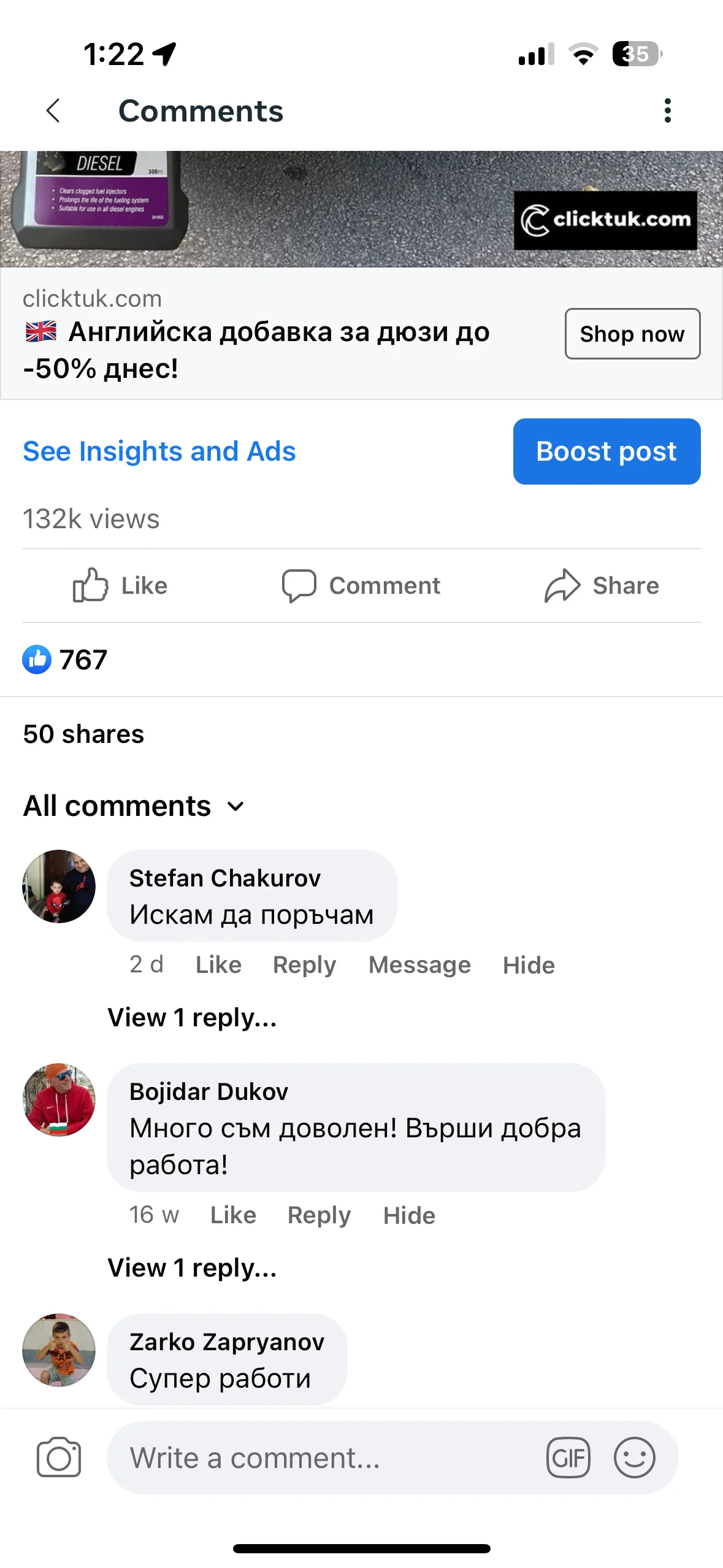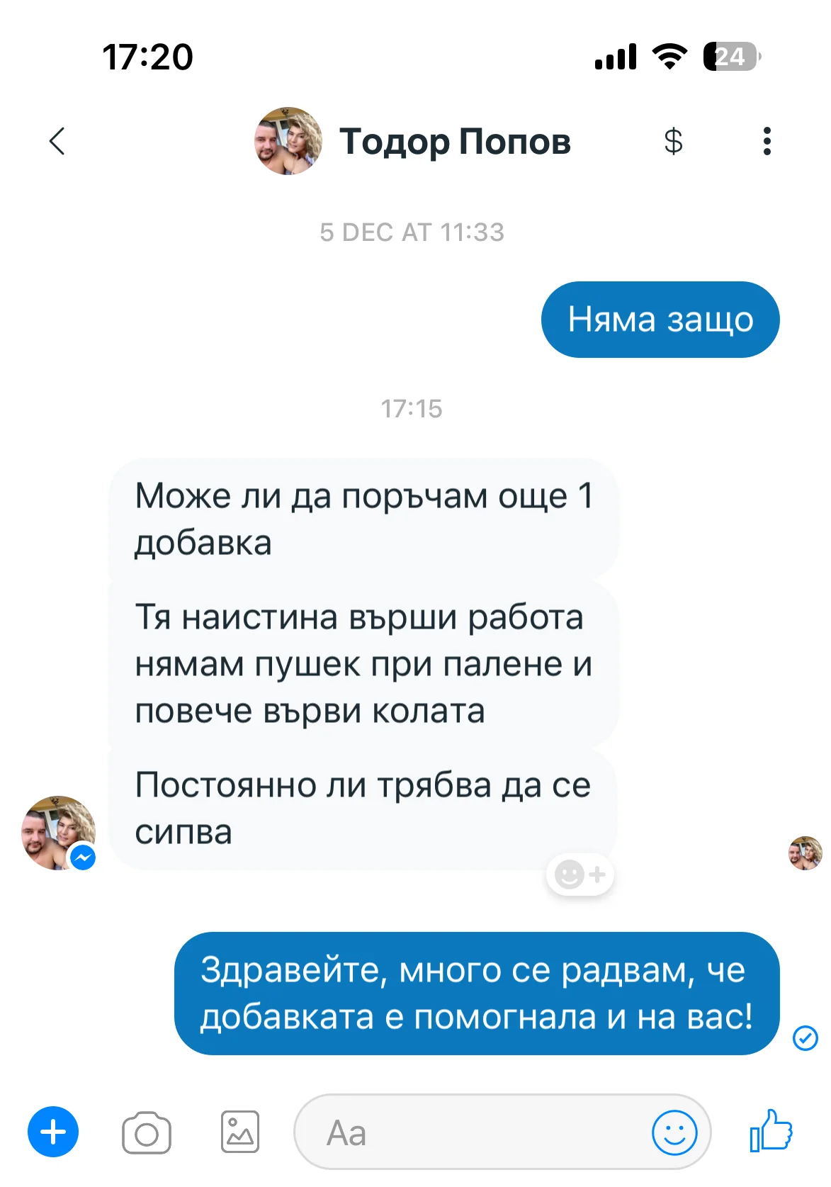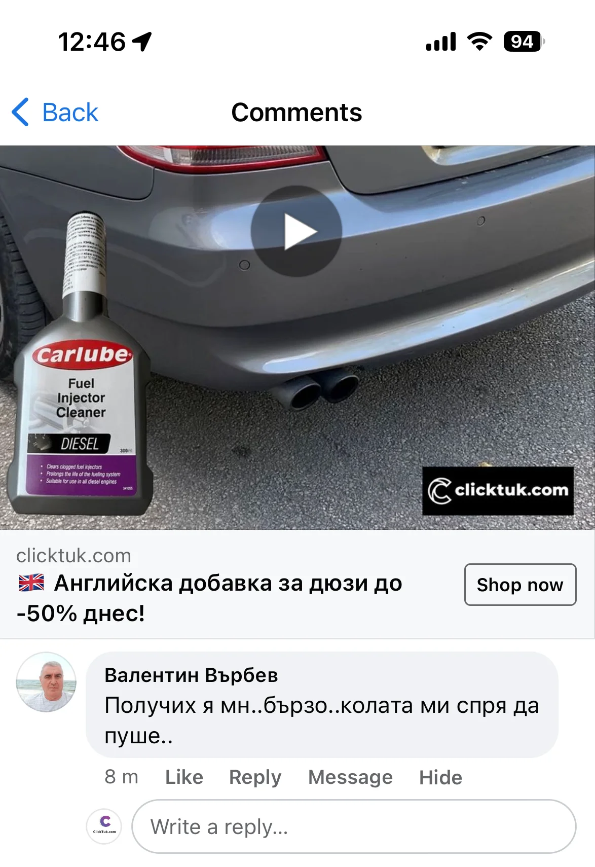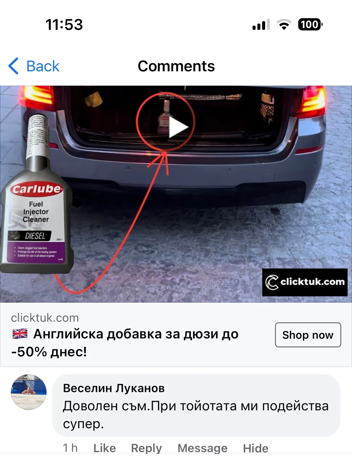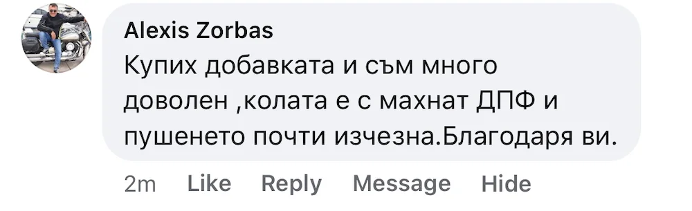 Колата ми губеше мощност на моменти и пушеше, светкаше и чека. Казаха ми да почистя дюзите с тази добавка. Сложих добавката и заредих 50Л. дизел, покарах 100км. извънградско и пушенето спря, колата стана по-пъргава и вече не губи мощност. Уникална се оказа тази добавка!