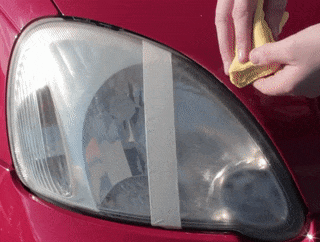 1️⃣ Почистете фаровете на автомобила си обстойно, така че да нямат прах и мръсотия по тях, иначе рискувате да се надраскат. Нанесете продукт №1 от комплекта (Headlight Polishing Compound) с микрофибърната кърпа, също включена в комплекта и търкайте около 5 мин. с равномерен натиск.