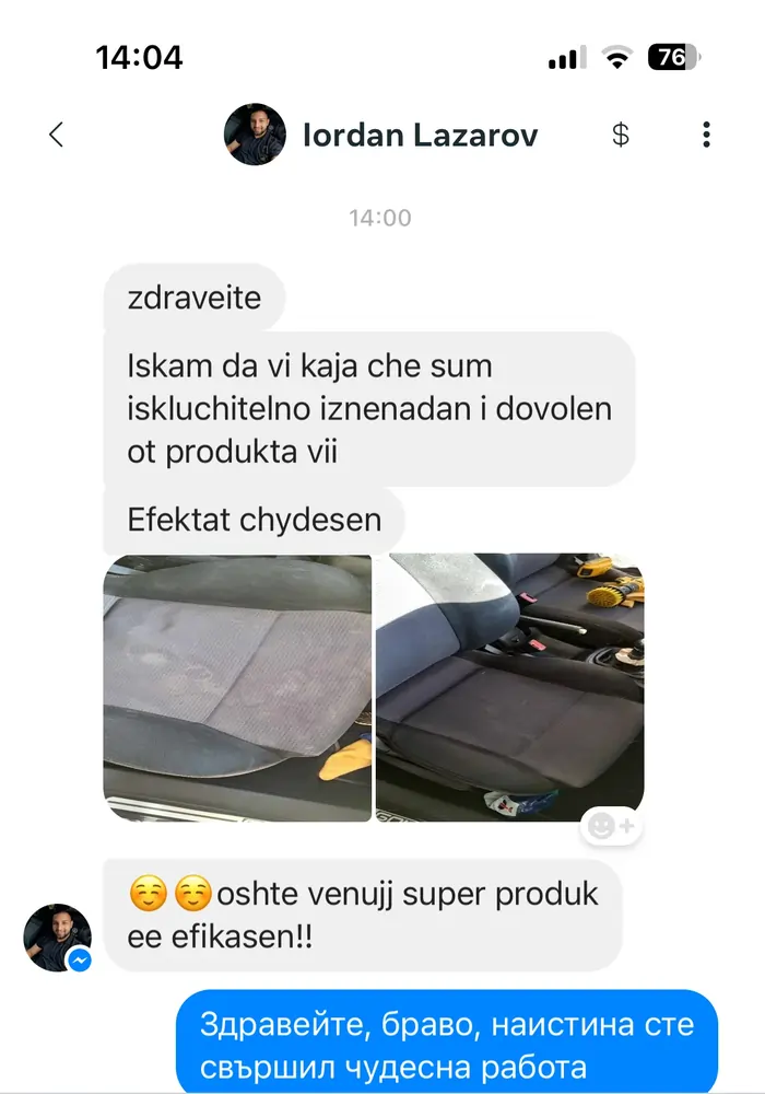 3️⃣ Накрая забършете мръсотията от повърхността с чиста микрофибърна кърпа, която може да закупите от нас и добавите лесно към поръчката си. Насладете се на свеж аромат на чистота в колата или дома!